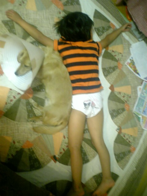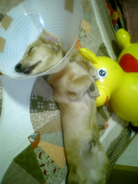 カラーつけたまま器用な寝姿です(((*´≧ロ≦)σ